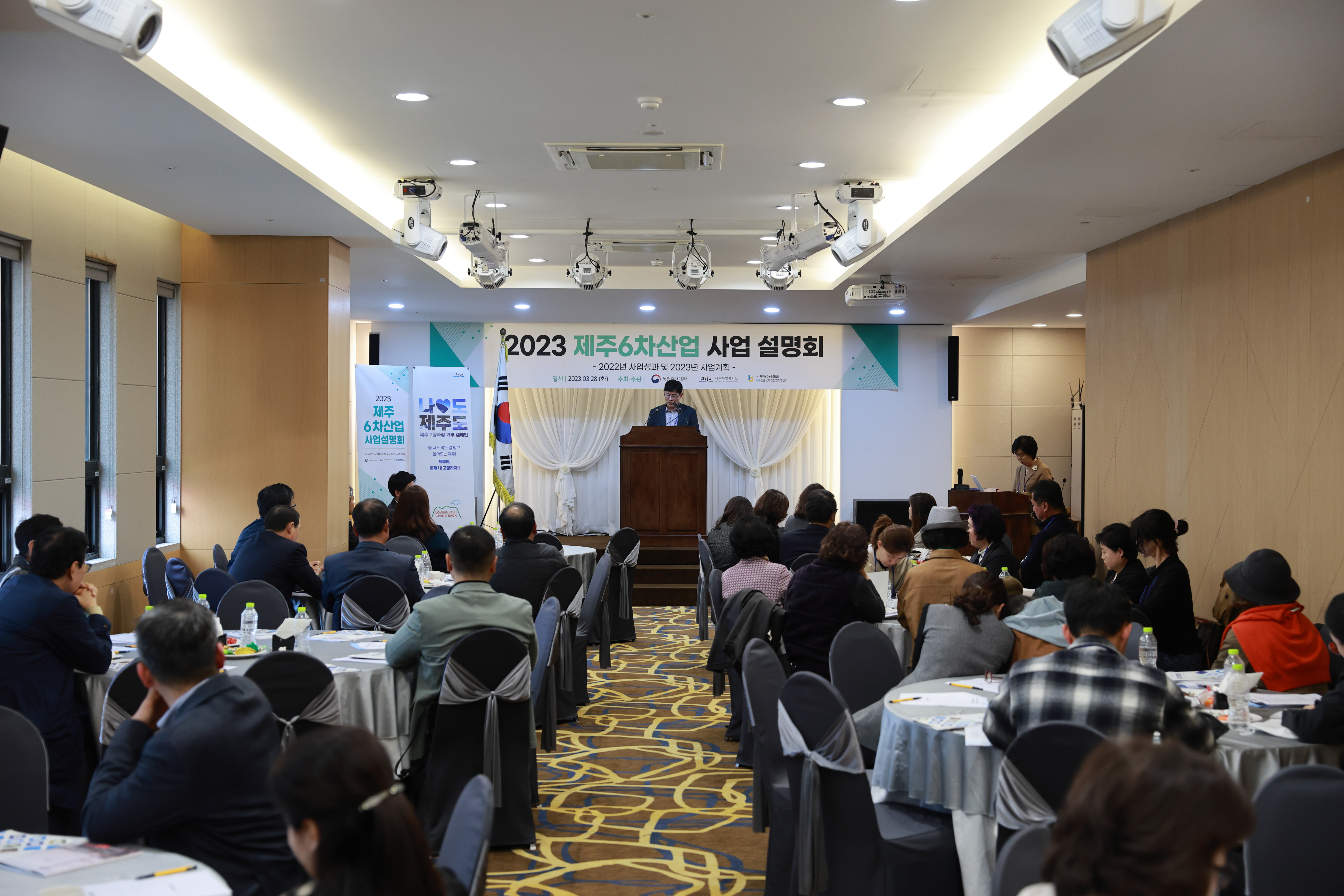 제주농업농촌진흥원 제주농촌융복합산업지원센터(이하 센터)는 제주6차산업협회와 함께 2023년 제주6차산업 사업설명회를 28일(화) 오후4시, 제주팔레스호텔에서 개최하였다. 이번 설명회는 코로나19로 인해 지난 2019년 이후 약 4년 만에 제주6차산업인들이 모여 2022년 사업성과 및 2023년 사업계획에 대한 사업설명회를 실시하였다.