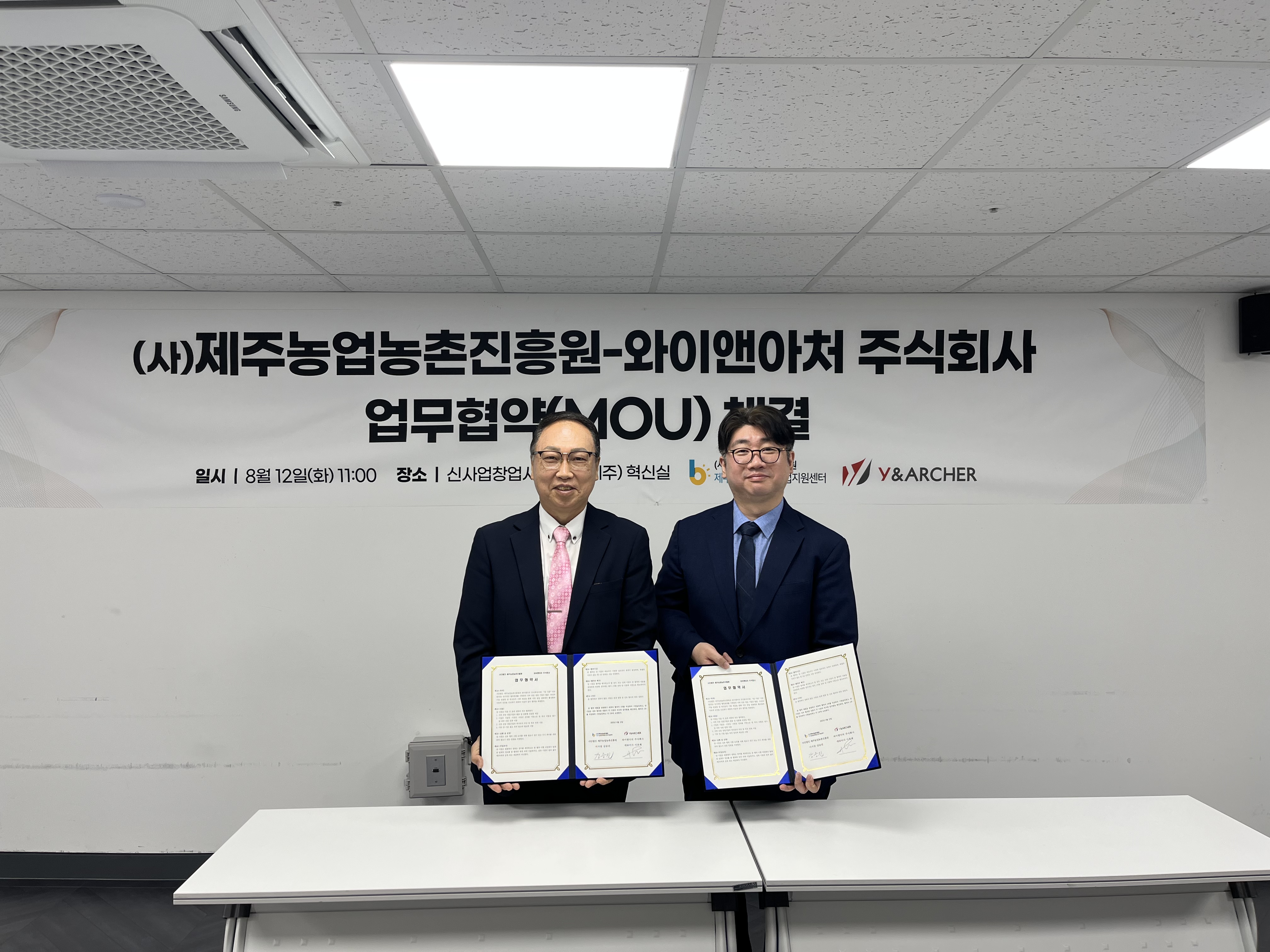 오늘 8월 12일(화), 제주농업농촌진흥원과 글로벌 액셀러레이팅 기업 와이앤아처가 업무협약(MOU)을 체결했습니다.