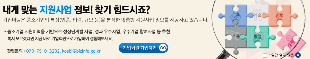 중소기업청에서 위와 같이 전국 지원사업 검색 서비스를 지원하는 기업마당이라는 사이트를 운영하고 있으니 참고하시길 바랍니다.