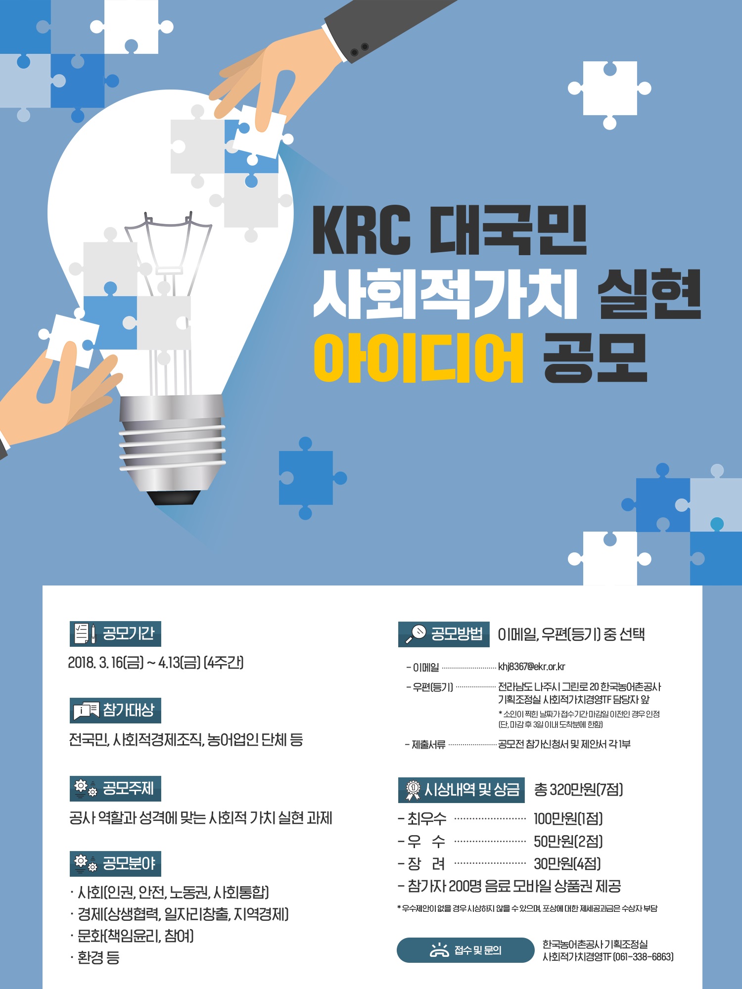 - 제목 「KRC 사회적가치 실현 아이디어 공모전」개최 공고