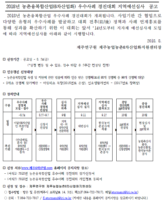 - 제목 2018년 농촌융복합산업 우수사례 경진대회 지역예선심사 실시 공고!