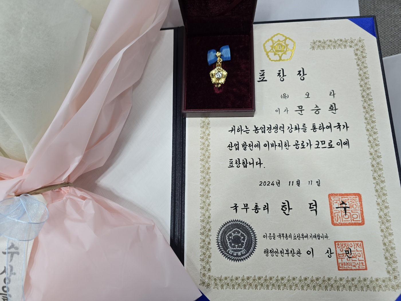 농업회사법인 오라(유)(이사 문승환)가 농업인의날 정부포상식에서