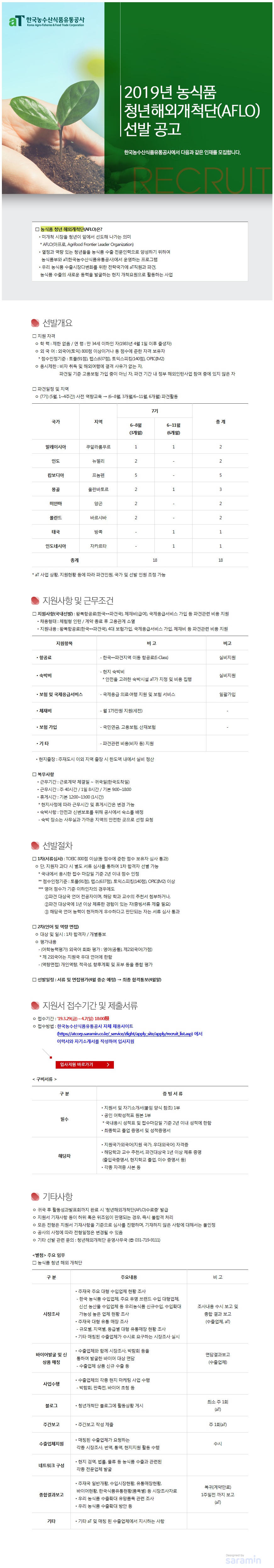 2019년 농식품 청년해외개척단(AFLO)선발 공고 - aT센터
