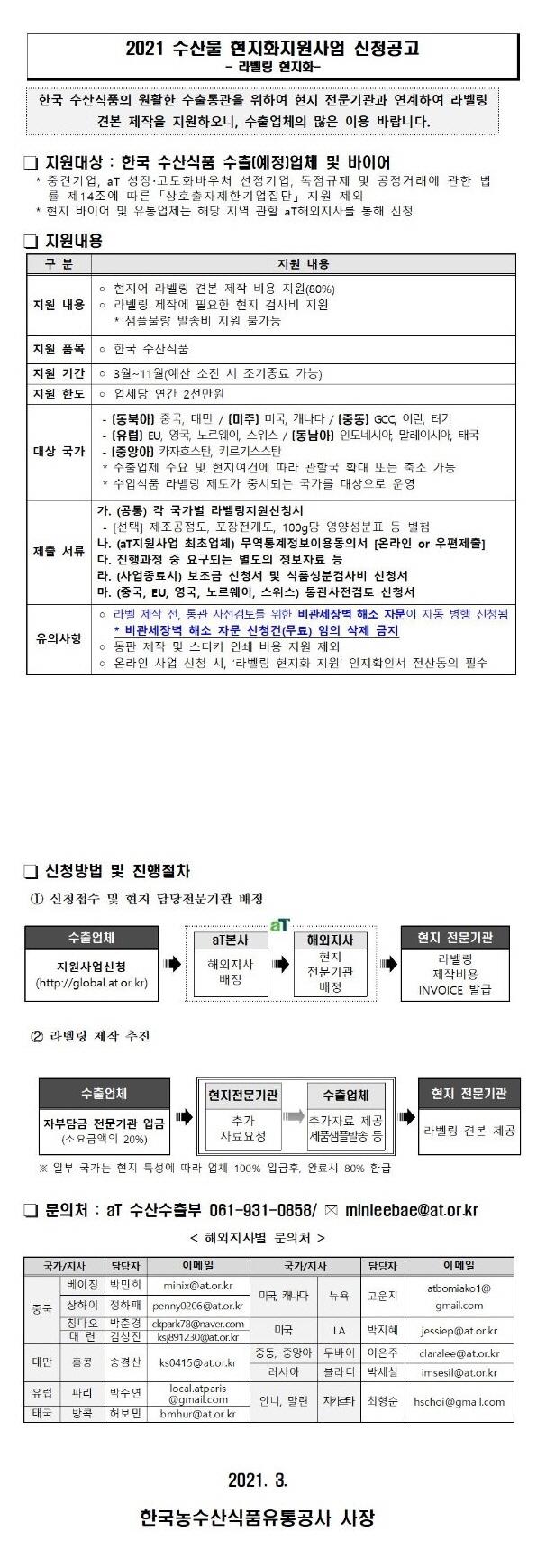 - 제목 2021년 농식품 현지화지원사업(라벨링 현지화) 신청 공고
