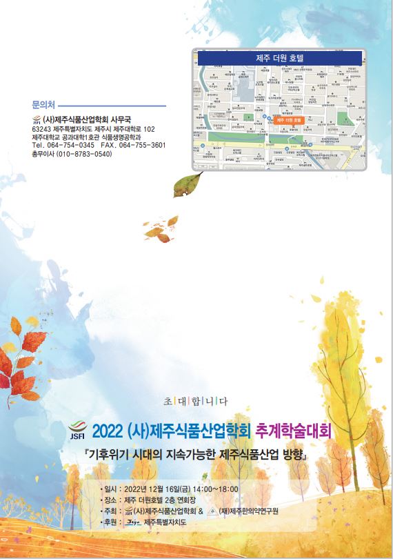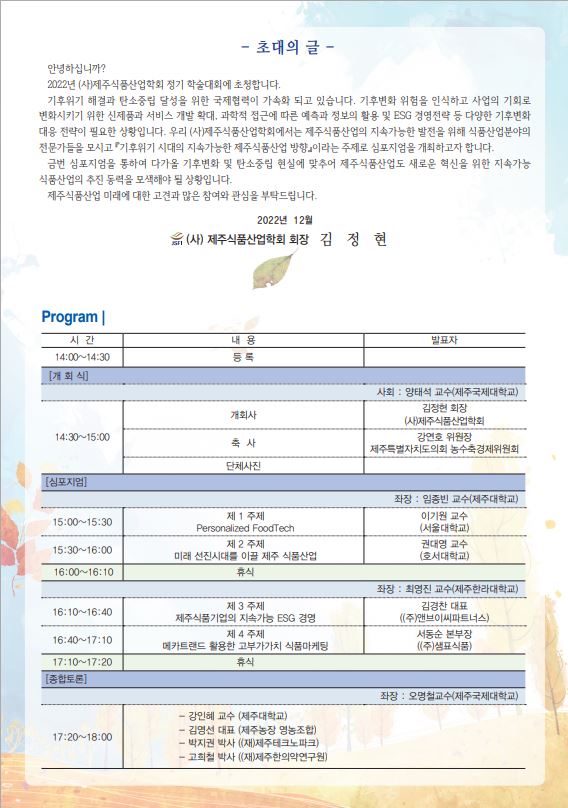 - 제목 "2022 사)제주식품산업학회 추계학술대회"