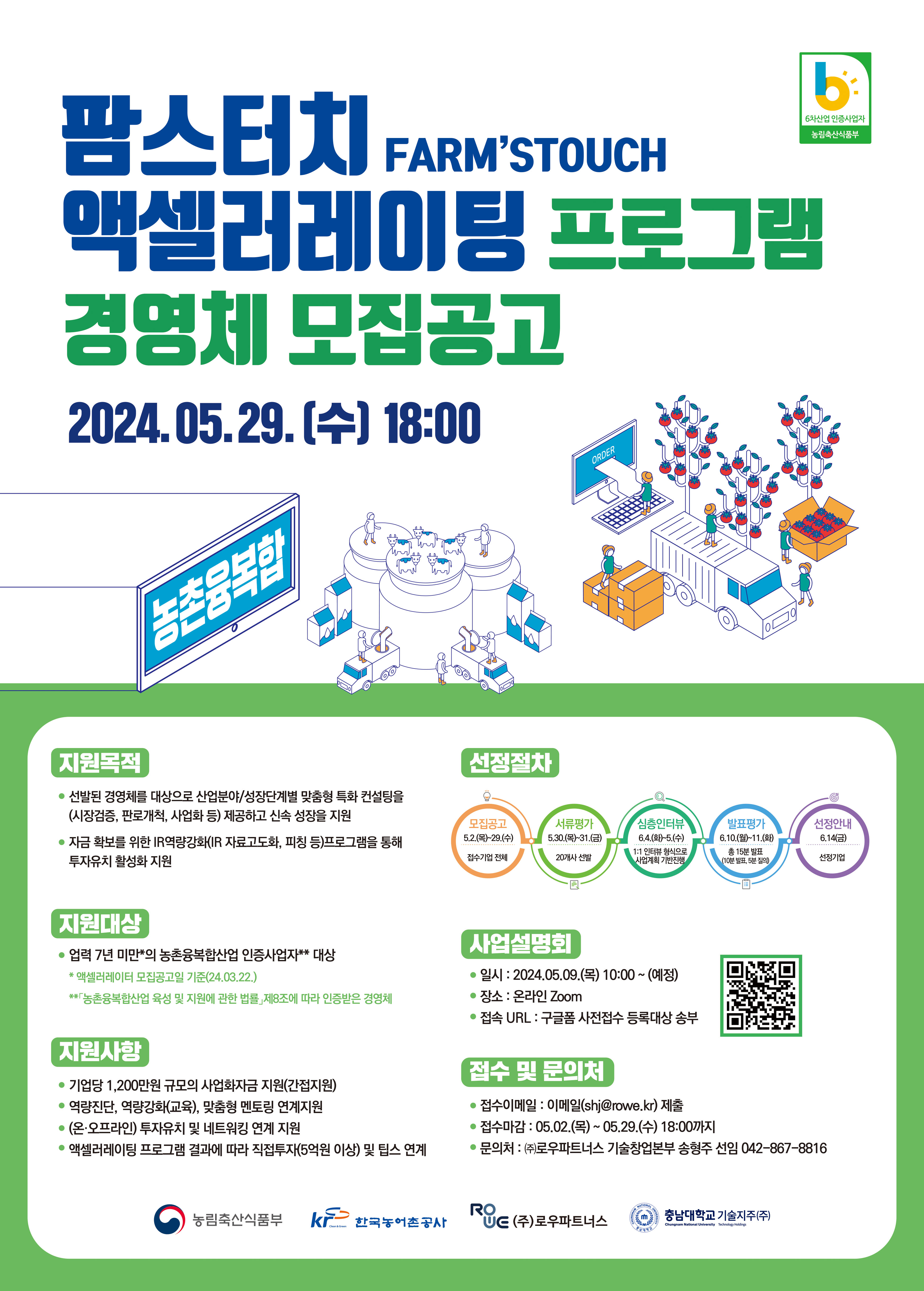 - 제목 2024 농촌융복합산업 팜스터치 액셀러레이팅 프로그램 경영체 모집공고
