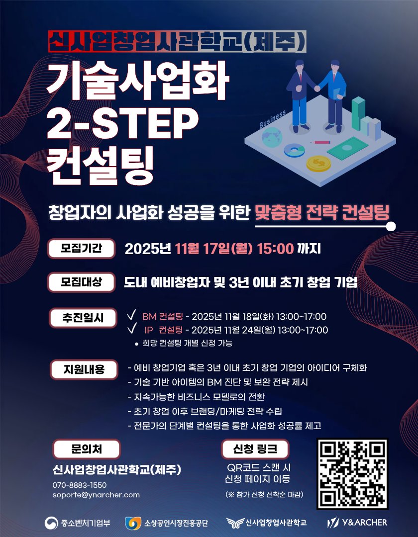 2025 신사업창업사관학교(제주) 기술사업화 2-STEP 컨설팅 참여자 모집 안내