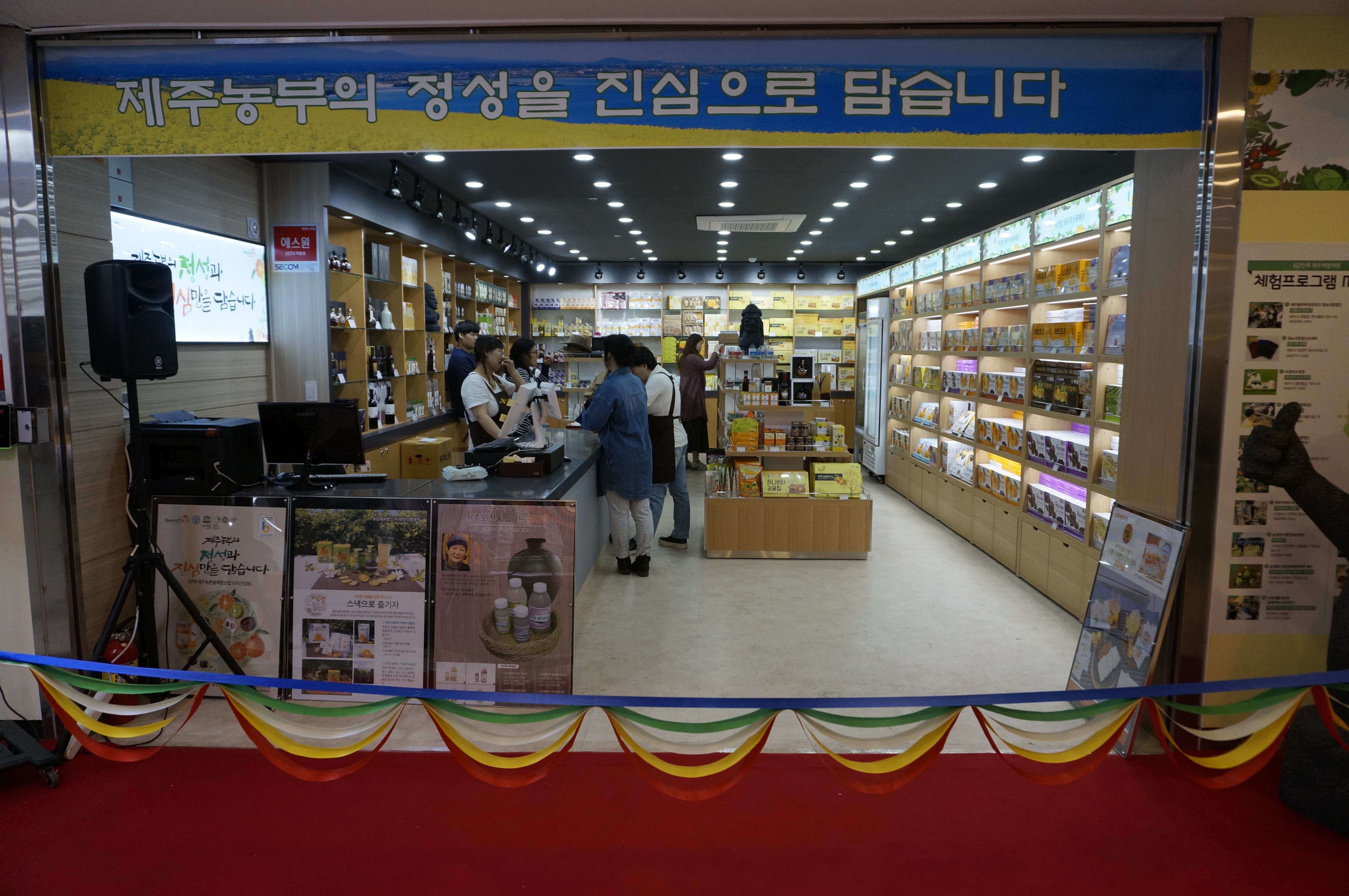 ○ 이번에 오픈 하게된 성산포항점은 도내 6차산업을 준비하고 있는 농업 경영체, 마을기업, 사회적기업 등으로부터 생산된 약66여개 업체 300여개 제품이 입점 되어있고, 앞으로도 제주농산물을 활용한 가공식품, 농산원물, 기념품등 다양한 제주특산물을 입점하여 지속적으로 도내 관련 경영체에 판로기회를 확대할 예정이다.